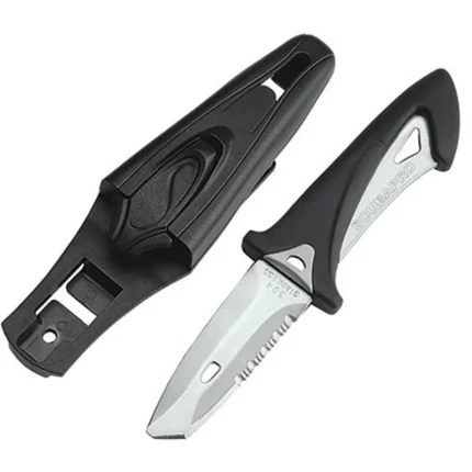 Jeśli preferujesz pełnowymiarowe noże nurkowe, z pewnością docenisz wszechstronny model K6 marki SCUBAPRO. Zastosowano w nim wysokiej klasy ostrze ze stali nierdzewnej z klasycznym szpicem typu clip-point. Dolna część ostrza ma cienką, wklęsłą krawędź idealną do precyzyjnych, czystych cięć, natomiast górna krawędź została wyposażona w ząbkowanie przeznaczone do sprawnego przecinania lin. Dodatkowo na ostrzu znajduje się wycięcie do cięcia żyłki.