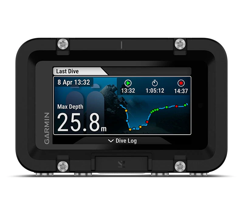 Garmin Descent X50i – profesjonalny komputer nurkowy z 3″ kolorowym ekranem dotykowym, integracją ciśnienia z 8 butlami, sonarową komunikacją między nurkami i wodoszczelnością do 200 m.