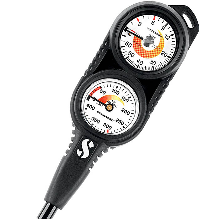 Doskonały system zapasowy, który umożliwia nurkowi jednoczesne monitorowanie zużycia powietrza i głębokości.