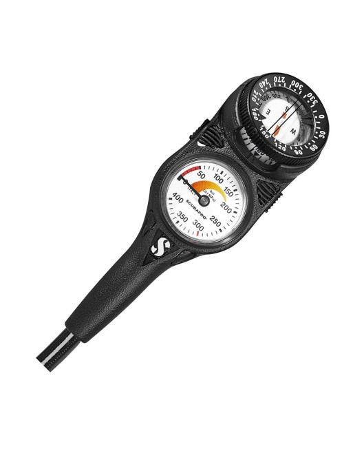 Zwarta i czytelna dwuelementowa konsola: manometr i kompas, stanowiąca idealny instrument zapasowy w podróży.