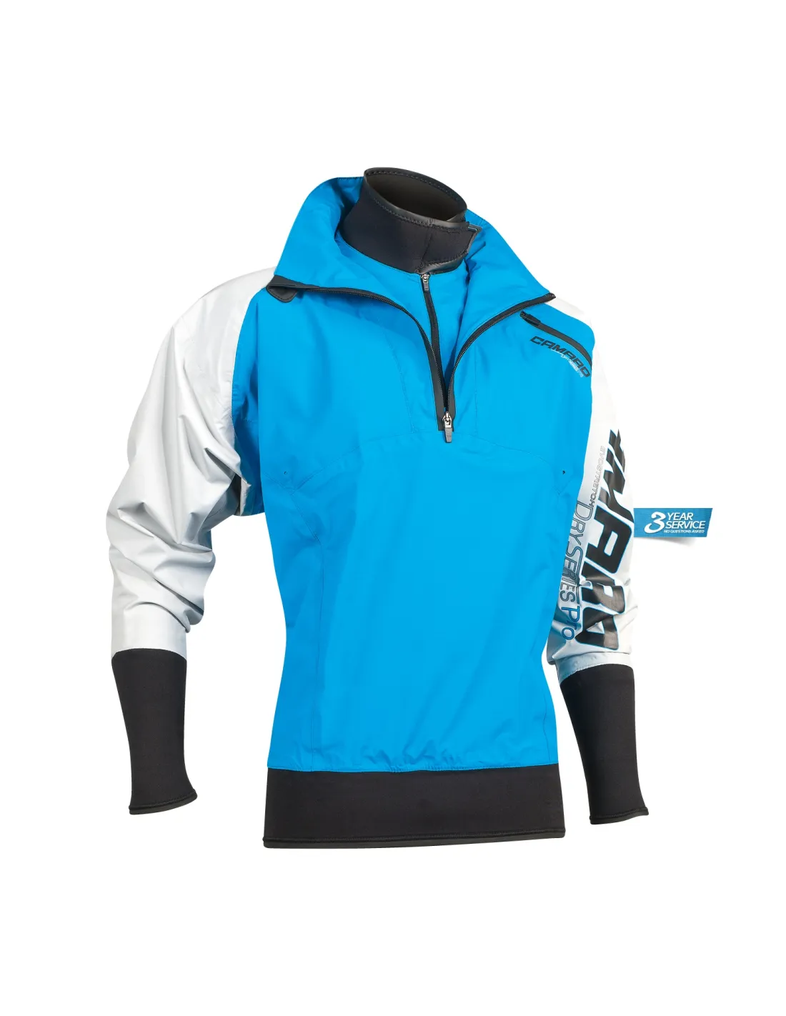 • Sucha koszulka wykonana z super elastycznego trójlaminatu z neoprenowym kołnierzem, talią i mankietami na ramionach.
