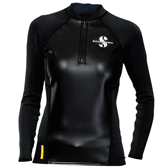 SCUBAPRO odświeżyło swoją popularną linię HYBRID, która obejmuje termiczną bluzę z długim rękawem, szorty cargo oraz bezrękawnik z kapturem. HYBRID THERMAL LONG SLEEVE TOP (termiczna bluza z długim rękawem) posiada gładki neopren o grubości 1 mm w obszarze tułowia oraz wysokoelastyczny nylon po bokach, na rękawach i kołnierzu. Od wewnętrznej strony paneli nylonowych znajduje się mikropolarowa podszewka, która sprawia, że bluza jest ciepła i przyjemna w dotyku. Ta tkanina typu fleece wchłania mniej wody, co pozwala zatrzymać ciepło przy ciele i zwiększa ogólny komfort cieplny. Dodatkowo materiał szybko schnie. Bluza posiada wygodny, dopasowany zamek błyskawiczny, który dodaje jej funkcjonalności i stylu. Można ją nosić samodzielnie lub jako warstwę docieplającą pod klasyczną pianką. Doskonale sprawdza się również jako ochrona przed promieniami słonecznymi podczas snorkelingu lub pływania.