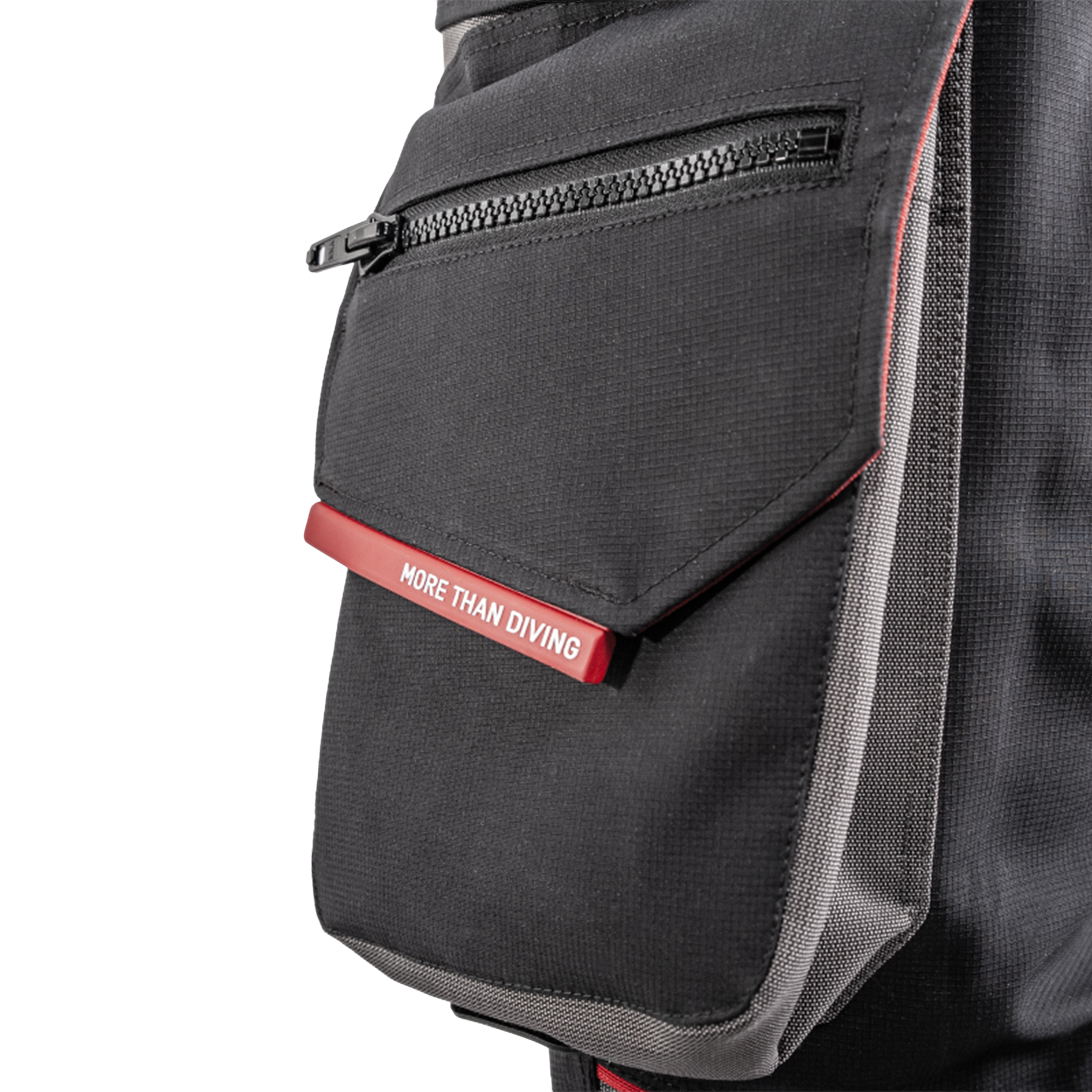 Kieszenie wykonane z trilaminatu Ripstop E.lite z przodu
