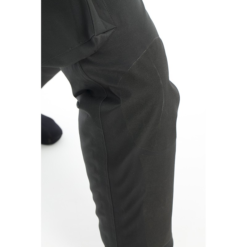 • Wszystkie szwy skafandra są podwójnie klejone oraz dodatkowo zabezpieczone taśmą lateksową, wzmacniającą łączenia oraz zapewniającą szczelność suchego skafandra.