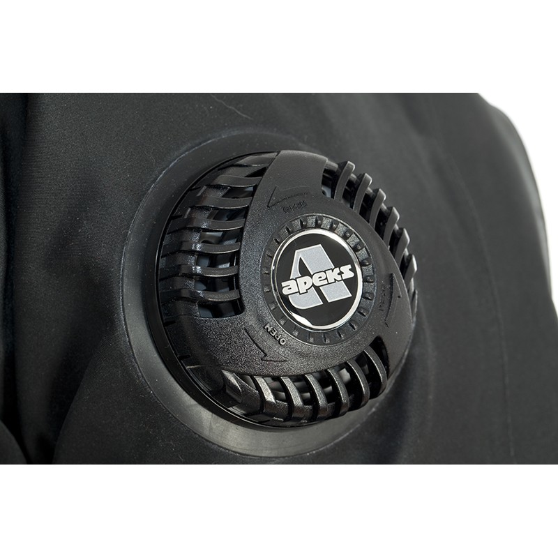 • Skafander posiada zawór upustowy i dodawczy firmy Apeks.