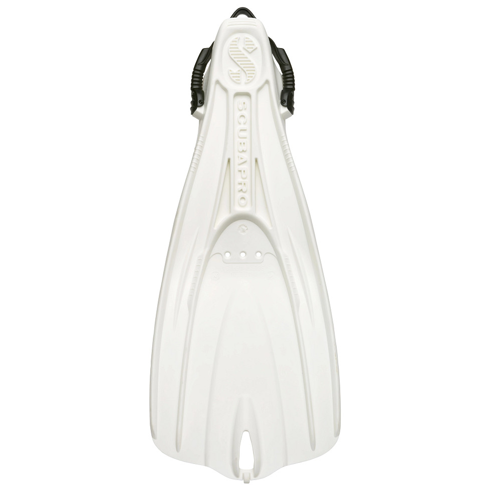Wymienny, samoregulujący się pasek bungee na pięcie zapewnia bardzo uniwersalne dopasowanie. Pasek sprawia również, że zakładanie i zdejmowanie płetwy jest wyjątkowo łatwe, a przy tym wygodnie przylega do gołej pięty. Płetwy GO można także używać z cienkimi skarpetami neoprenowymi, jeśli nurkowie wolą dodatkową ochronę stopy.